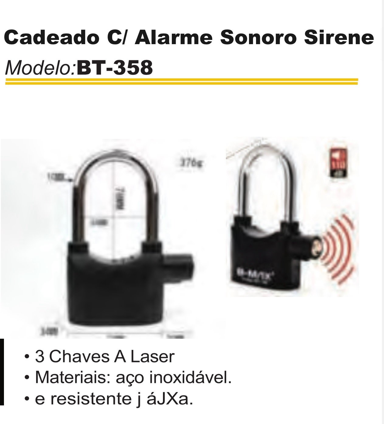cadeado com alarme sonoro BT-358