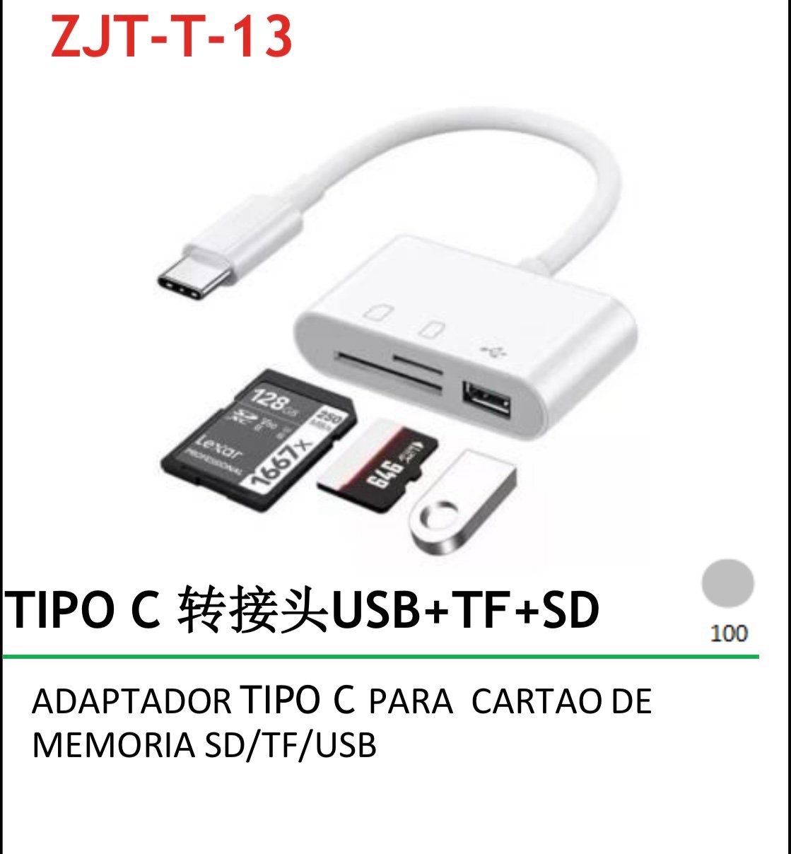 Adaptador type c para cartão memória da/TF/USB zjt-t-13 quantidade