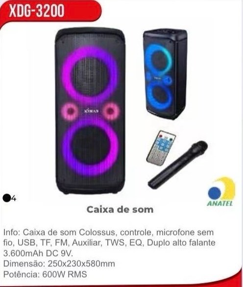 caixa de som sem fio 600w tws xdg3200 quantidade