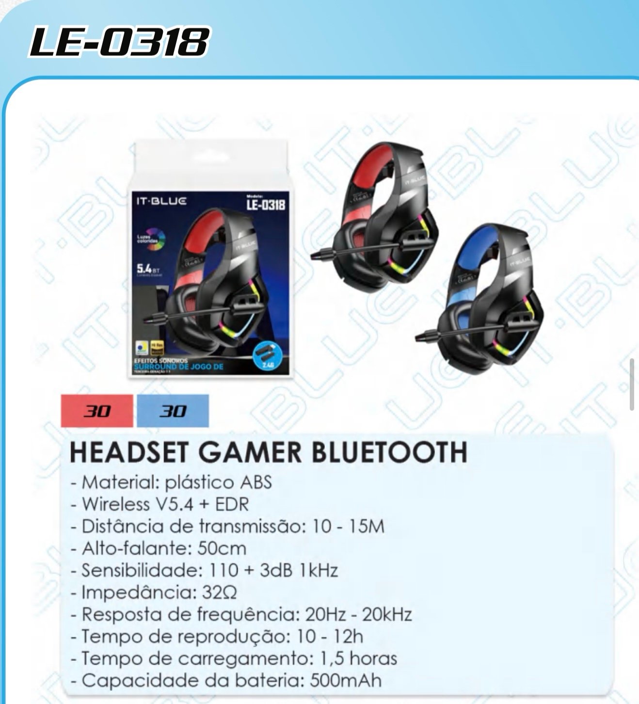 fone gamer 5.4BT LE-0318 quantidade