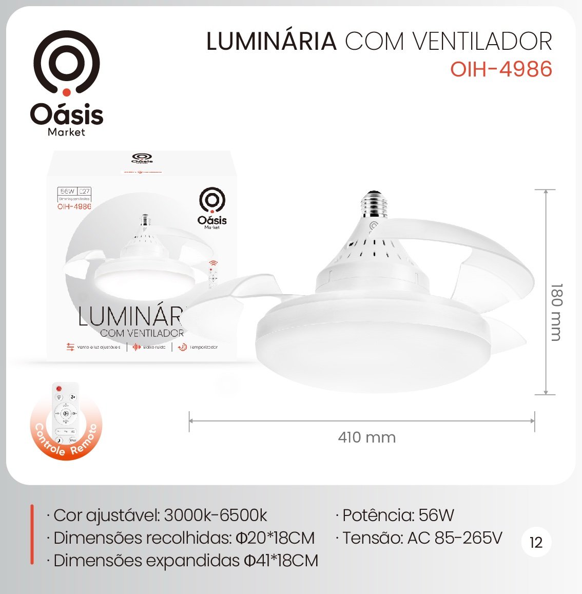 luminaria com ventilador OIH-4986 quantidade