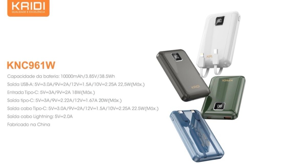 Power bank 10000mah 22.5w+PD20w KNc961w quantidade